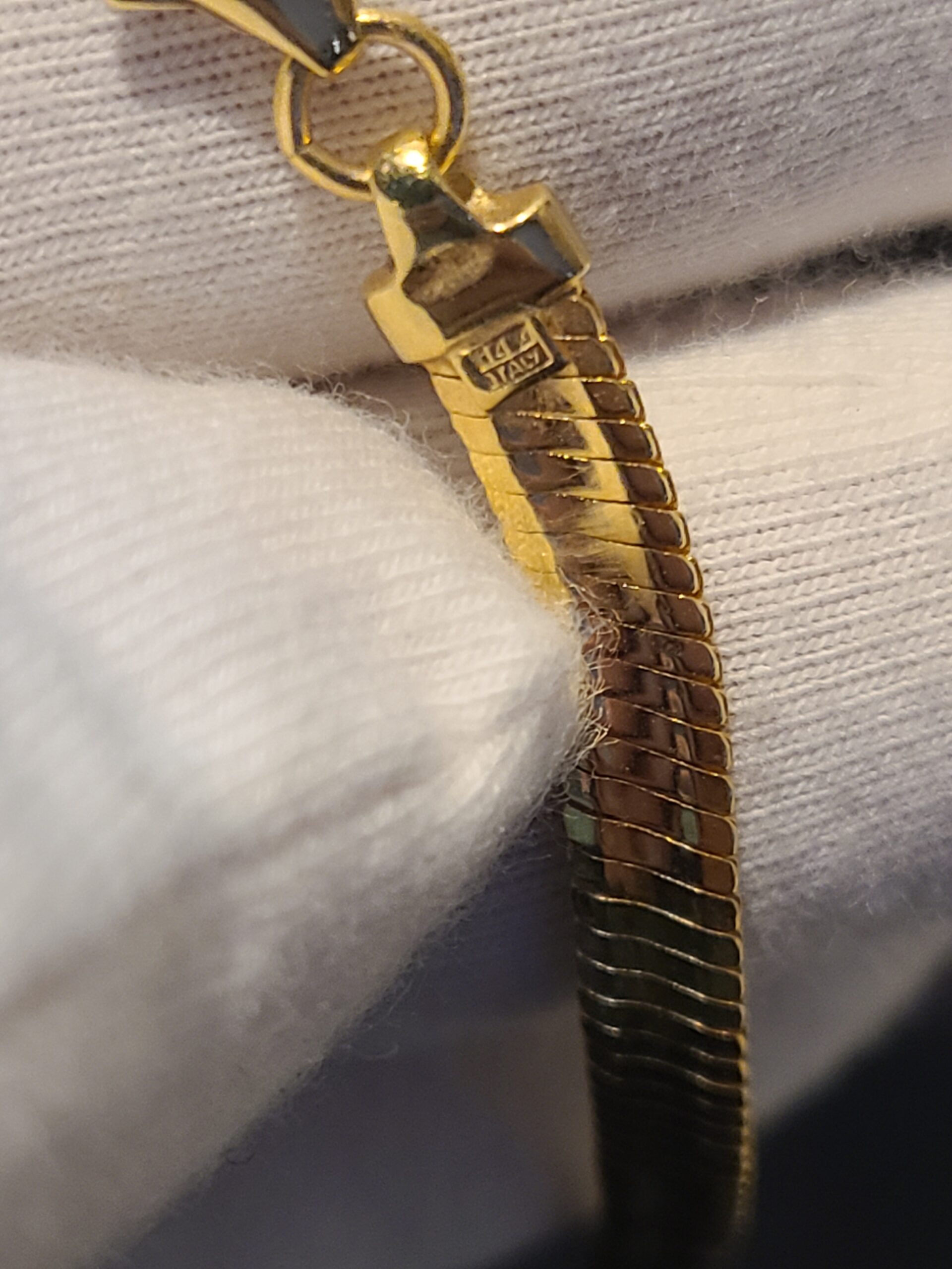 Amazing necklace in very good condition, sturdy and nice design, it weight 12.18 grams. the purity of the metals is 100% guaranteed.